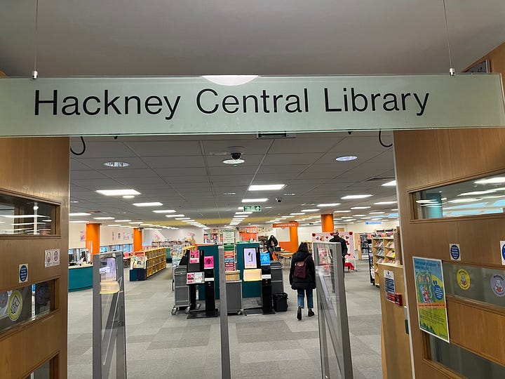 Of course, I also spent a considerable amount of time in cafes. A new spot for me was Pophams. It’s surprisingly busy on a weekday, I suppose everyone else in Hackney is also writing a book? The downside of London cafe culture is that they tend to shut around 4 or 5 in the afternoon. So after Pophams, I headed to Hackney Central Library (open till 8pm) to wrap up some work. Save our public libraries!